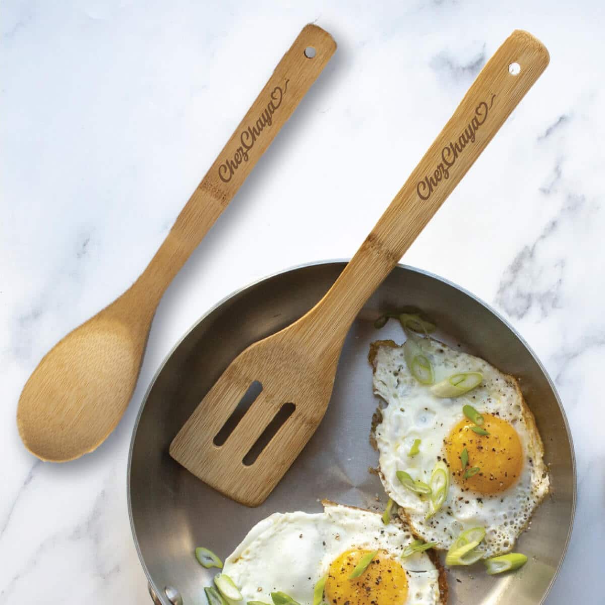 Exclusive Limited Edition ChezChaya Branded Bamboo Spoon & Spatula Set.
