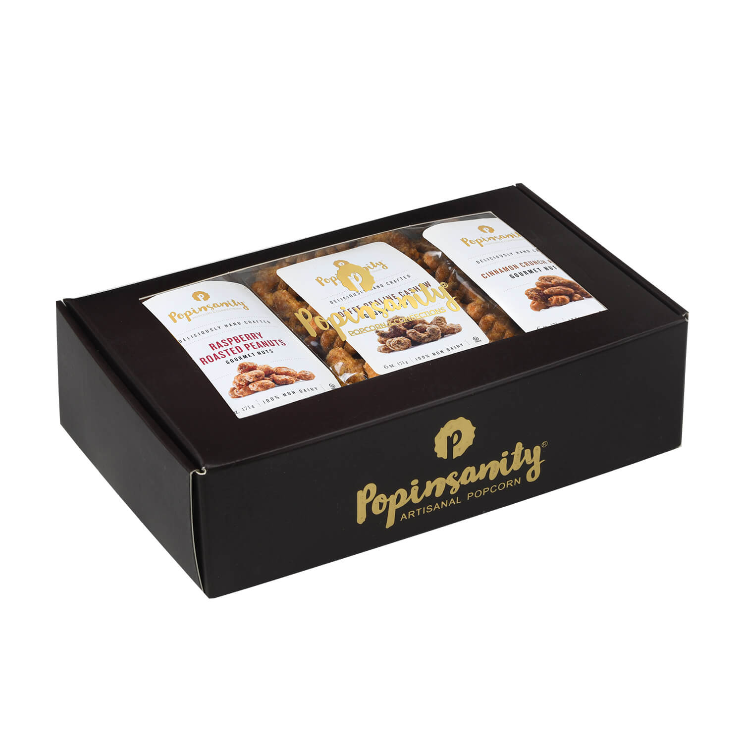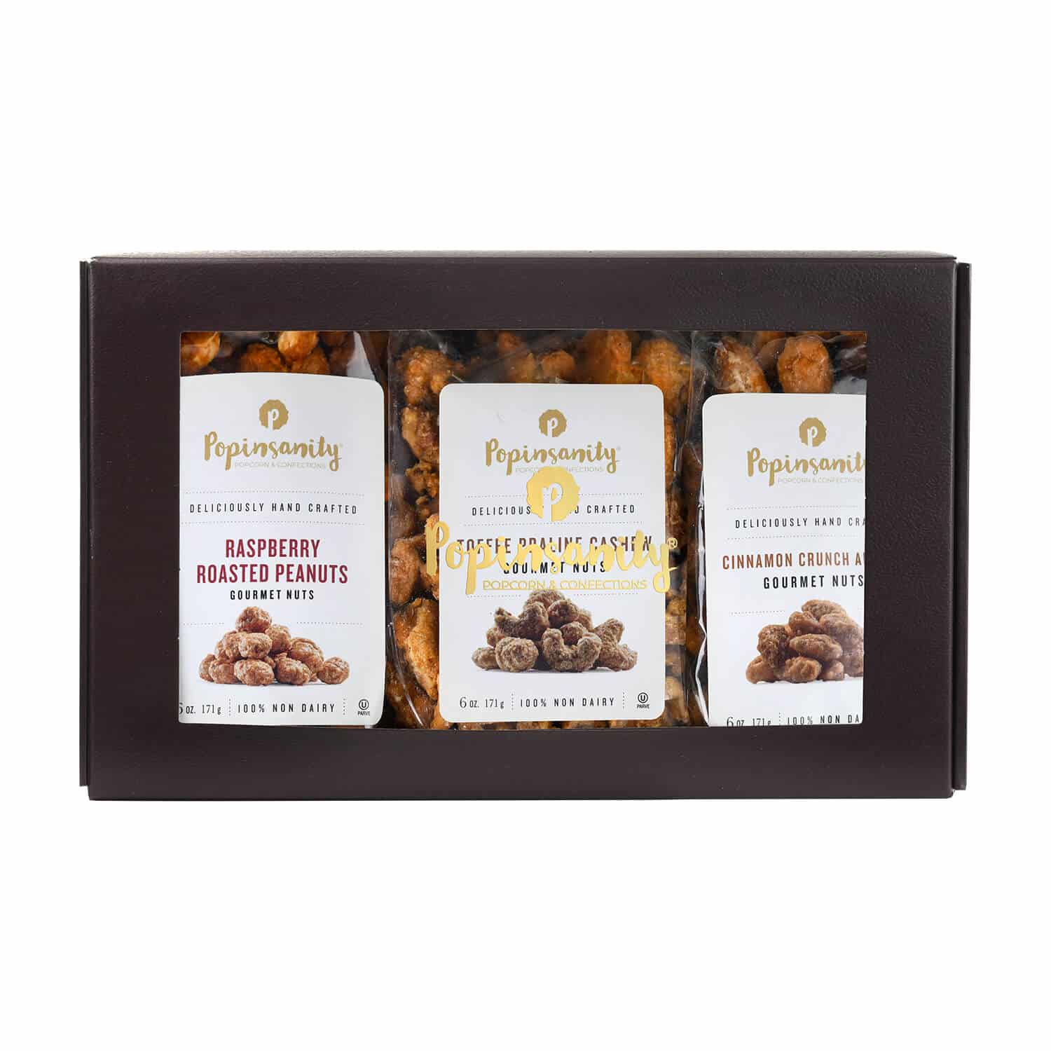 Every nut is roasted and glazed in small batches using premium, non-GMO whole nuts, ensuring freshness, texture, and flavor in every bite. This variety makes the trio a crowd-pleaser—something for spice lovers, fruit fans, and those who crave classic sweetness.