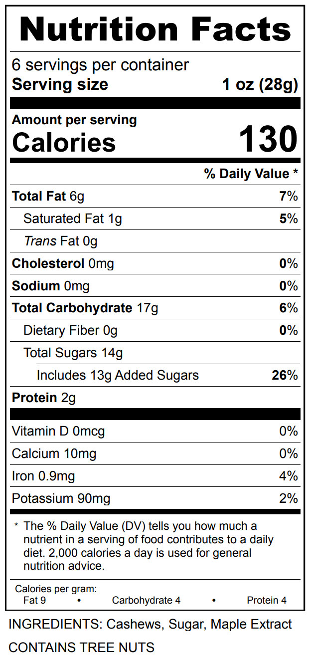 Tantalize your taste buds with something they may never have experienced before. This warm and inviting flavor will have you craving a northern escape. Our Maple Roasted Candied Cashews take a world-famous nut and turn it into something special. This artisan recipe uses whole roasted cashews and covers them in an exquisite Canadian maple glaze for the mouth-watering combination you never knew you needed, until now. The warm sweetness of this Canadian gold compliments the creaminess of each cashew for a divine snacking experience.