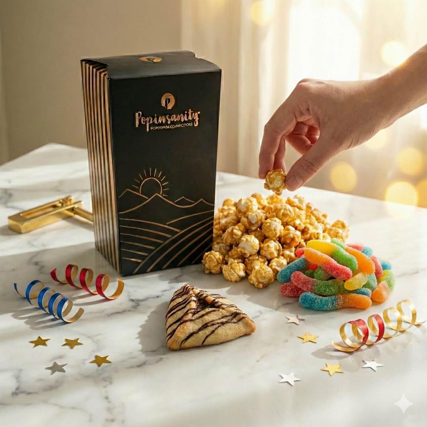 ✔ Drizzled Hamantash – A handcrafted, golden-baked Purim pastry with rich chocolate drizzle for a gourmet touch.