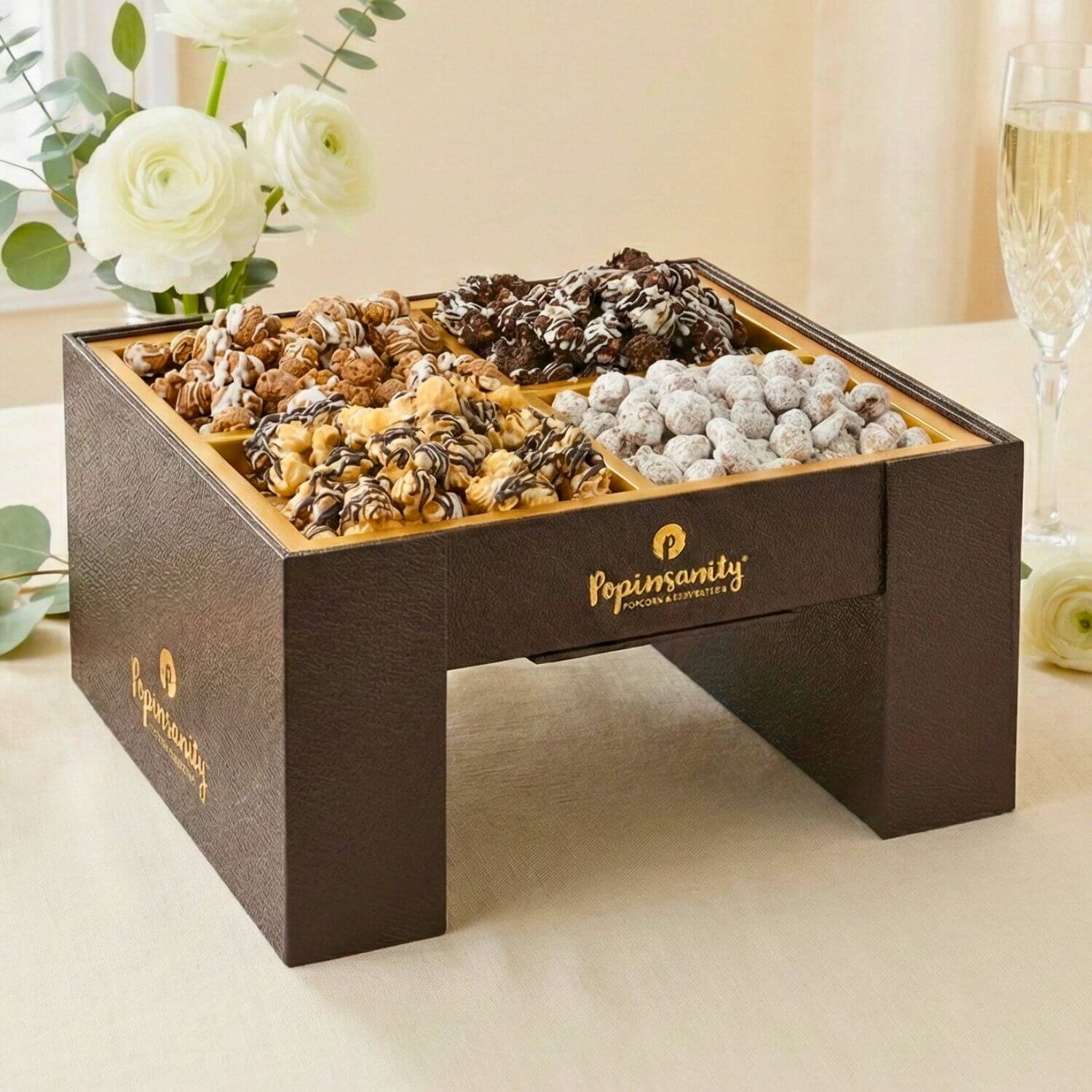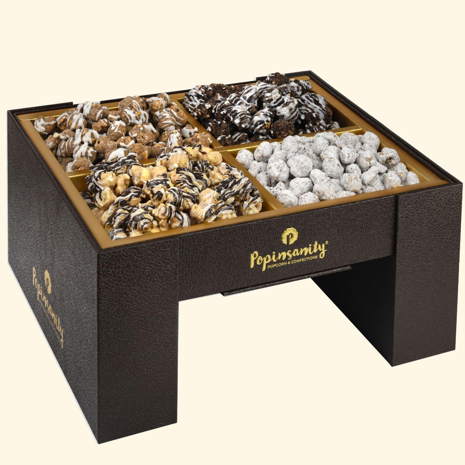 To match the artistry inside, we engineered a proprietary feat of packaging. It arrives as a sleek, leather-textured luxury gift box, but with a few simple motions, it locks into a tiered architectural centerpiece. No extra bowls required.