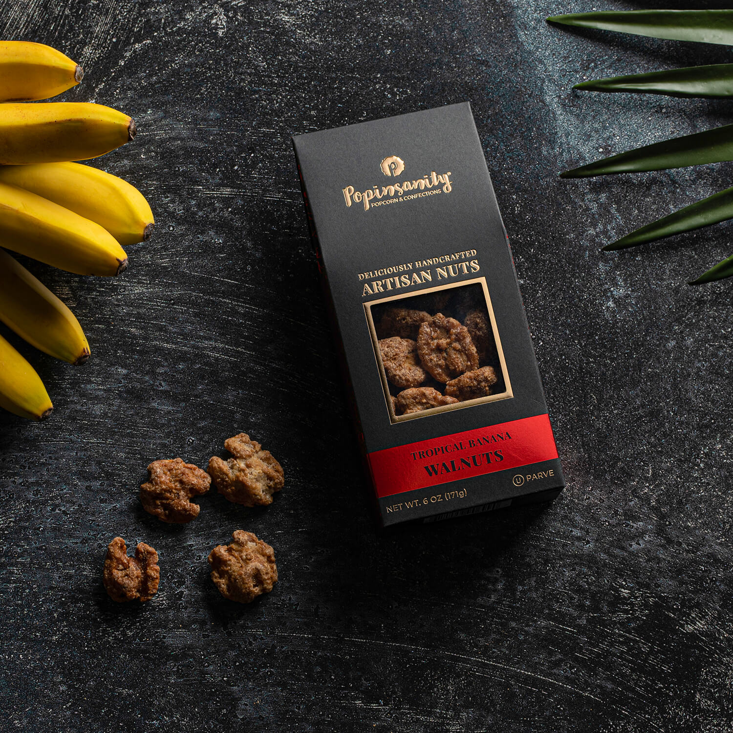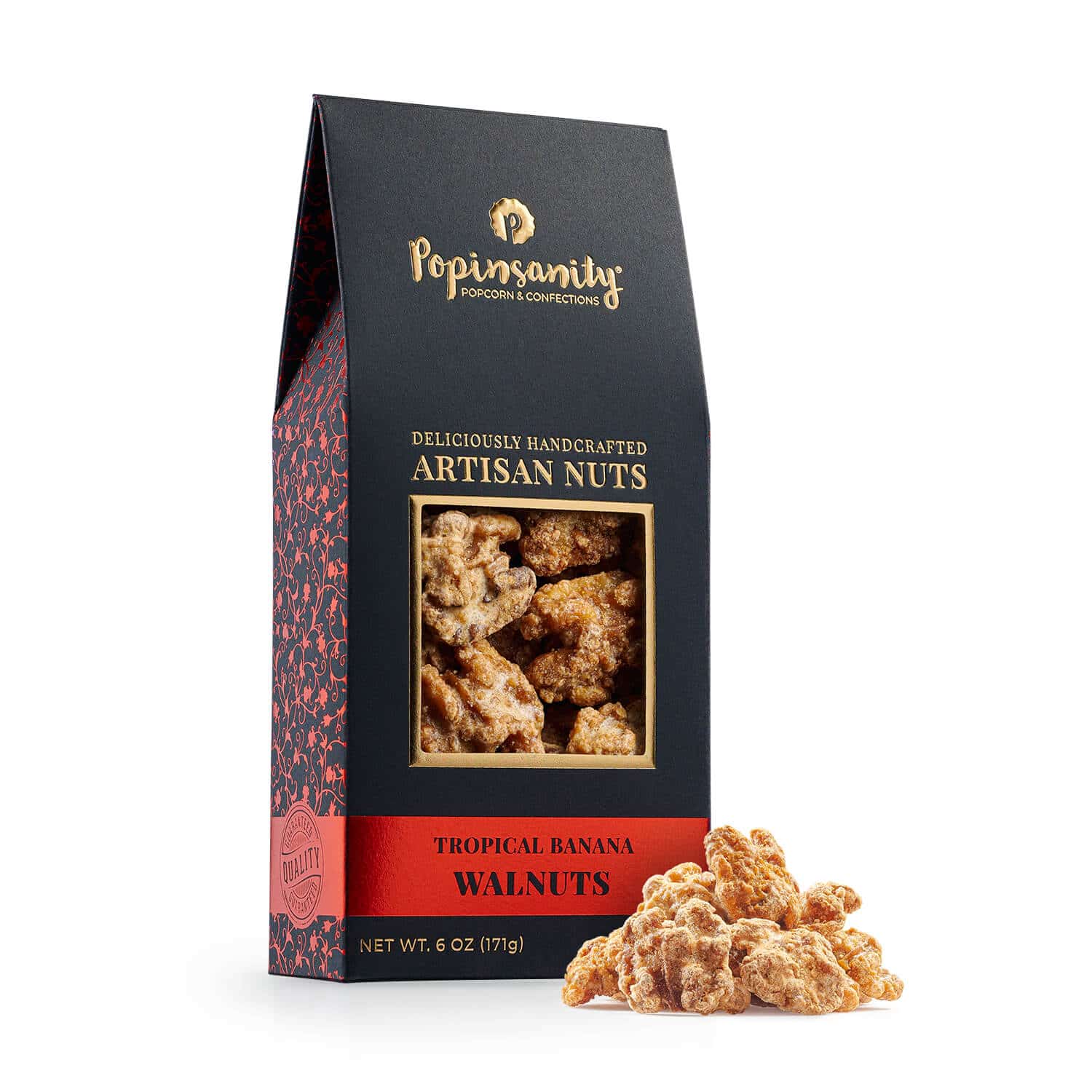 Escape from boring, unhealthy snacks with Tropical Banana Candied Walnuts. These wholesome dry-roasted nuts bring those tropical island vibes in every bite. Coated with a sweet banana glaze made from sugar and banana extract, this gluten-free and vegan treat features no artificial flavors or preservatives. It’s simplicity at its best, allowing you the luxury of enjoying the crunchy sweetness of bananas and walnuts to indulge your palate while making a healthy choice.