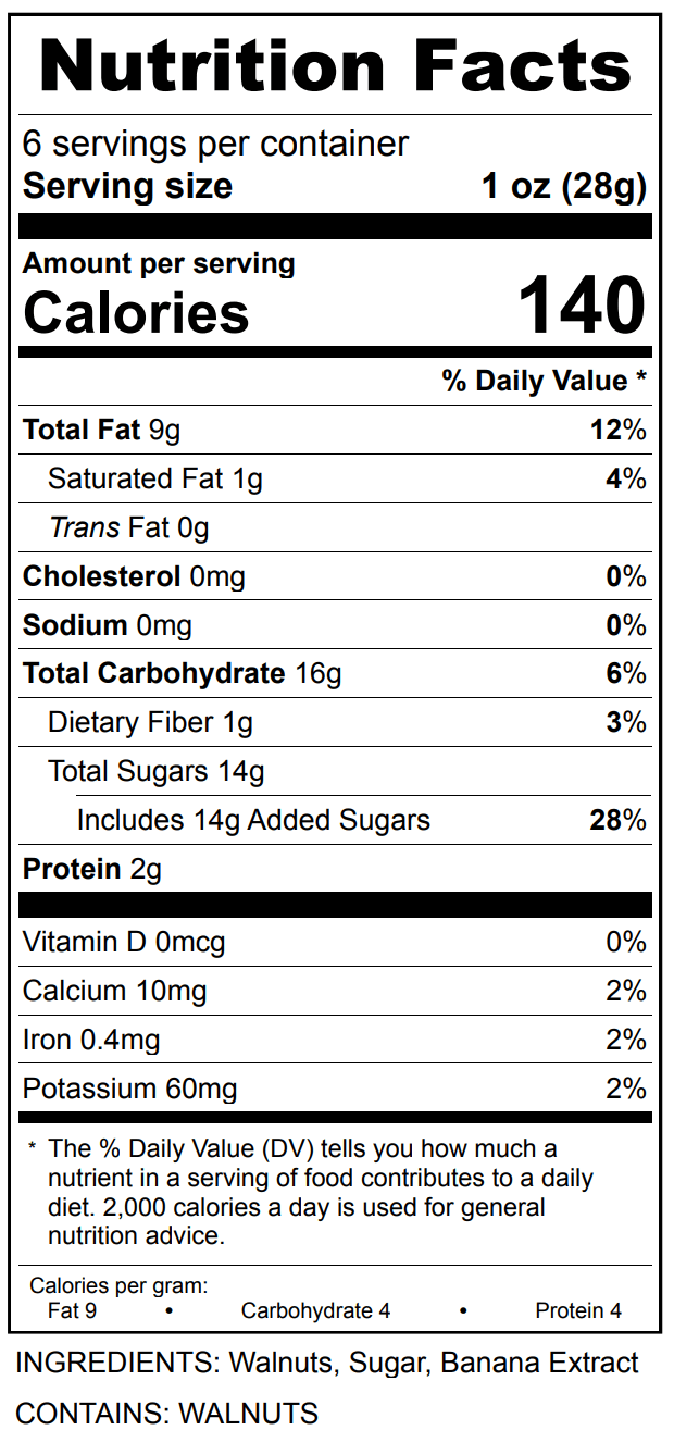 Looking for the ultimate gift that everyone will love? Give them our ridiculously delicious Banana Flavored Coated Walnuts! These nuts are made in small batches with the finest, high-quality ingredients and are gluten-free. Kick it up a notch and get some today!