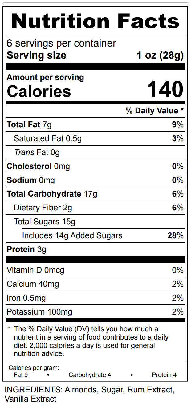 Almonds, Sugar, Rum Extract, Vanilla Extract
