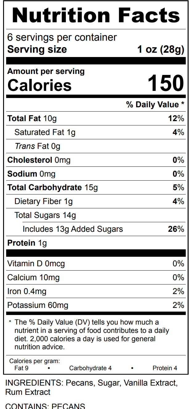 Every batch of nuts is handcrafted with quality and care so you get the most out of this delicious snack. Our Vanilla Rum Sugared Pecans are free from preservatives, artificial flavors, and are gluten-free. Take your taste buds on the adventure you crave.
